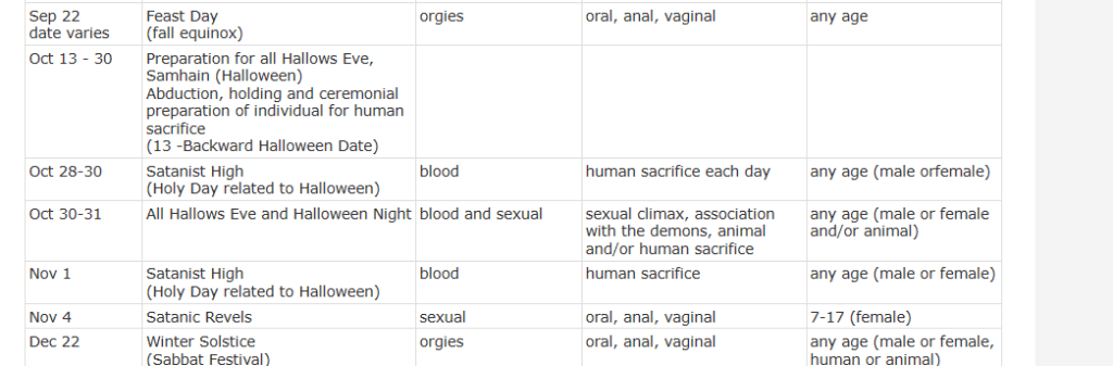 List taken from http://www.theopenscroll.com/hosting/SatanicCalendar.htm