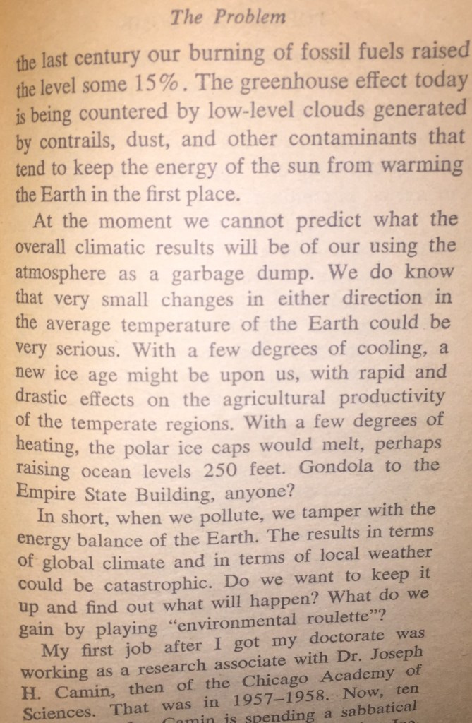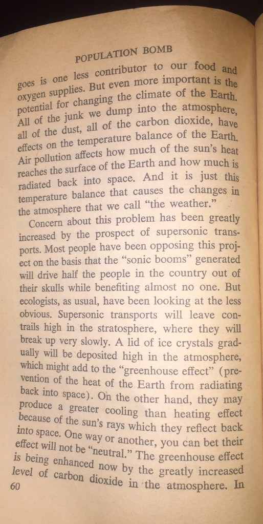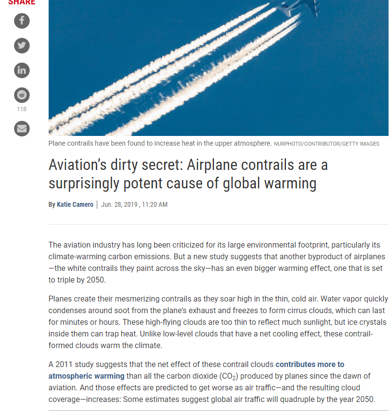 The following article snippets (from 1969 “Population Bomb” pg.60-61 and link to Sciencemag.com) illustrate one such example. One can see that the environmental hazards; global warming effect via contrails was discussed and understood several decades prior to any “new finding”.